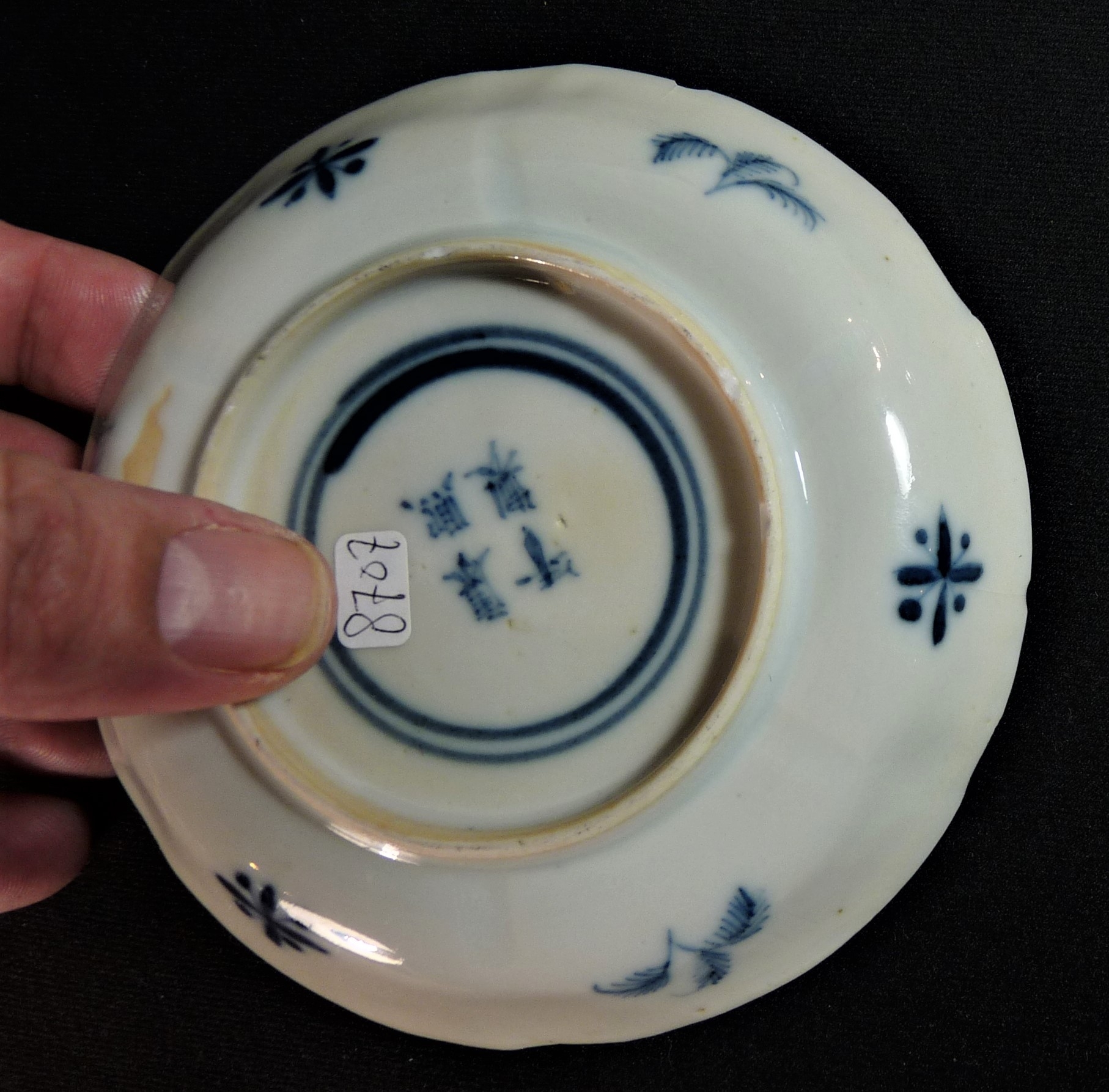 Chinese porcelain saucer with the painting of fish an lobsters.