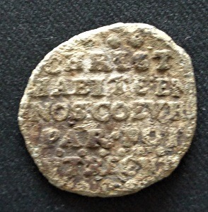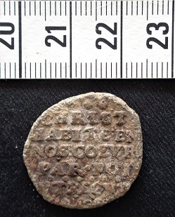 Avondmaal-loodje ?) De Waalse gemeente Utrecht, en dateert van voor 1694. De Waalse gemeente (in Utrecht gesticht in 1583) maakte tot 1604 gebruik van het Regulierenkerkje (Weeskerkje) aan de Oudegracht, van 1604 tot 1656 van de Janskerk en vervolgens-tot de dag van vandaag-van de Pieterskerk.